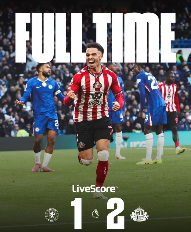 桑德兰成功收获英超2连胜,时隔11年半客场击败蓝军,上次已是2014年4月了,当前9轮积17分升至第2,创下队史英超前9轮最高积分纪录,距离榜首球队阿森纳只差2分!